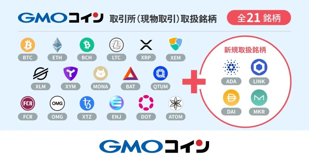 GMOコインではビットコインの他にも以下21銘柄を取り扱っています。